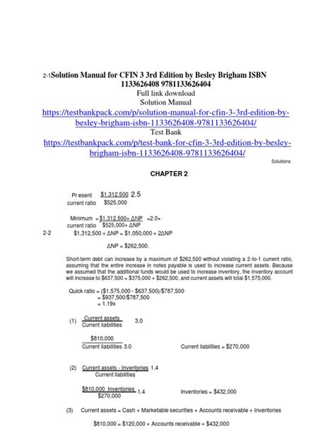 Read Online CFIN BESLEY BRIGHAM SOLUTIONS Reader Internet Archive