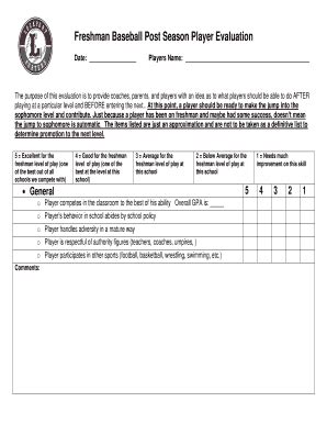 Download Freshman Baseball Post Season Player Evaluation Epub